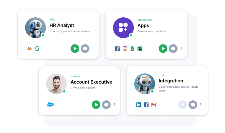 Seamless integration facilitates effortless collaboration between humans and various AI technologies, including RPA and IPaaS bots, ensuring that tasks are executed efficiently and the workflow remains cohesive and streamlined.